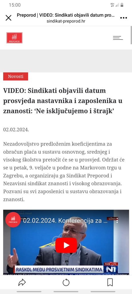 Ovo je, međutim, pitanje materijalnih prava radnika, a ne ljudskih prava i slobode izbora i mi kao sindikat podržavamo borbu ova dva sindikata, Sindikata Preporod i Nezavisnog sindikata znanosti i visokog obrazovanja.